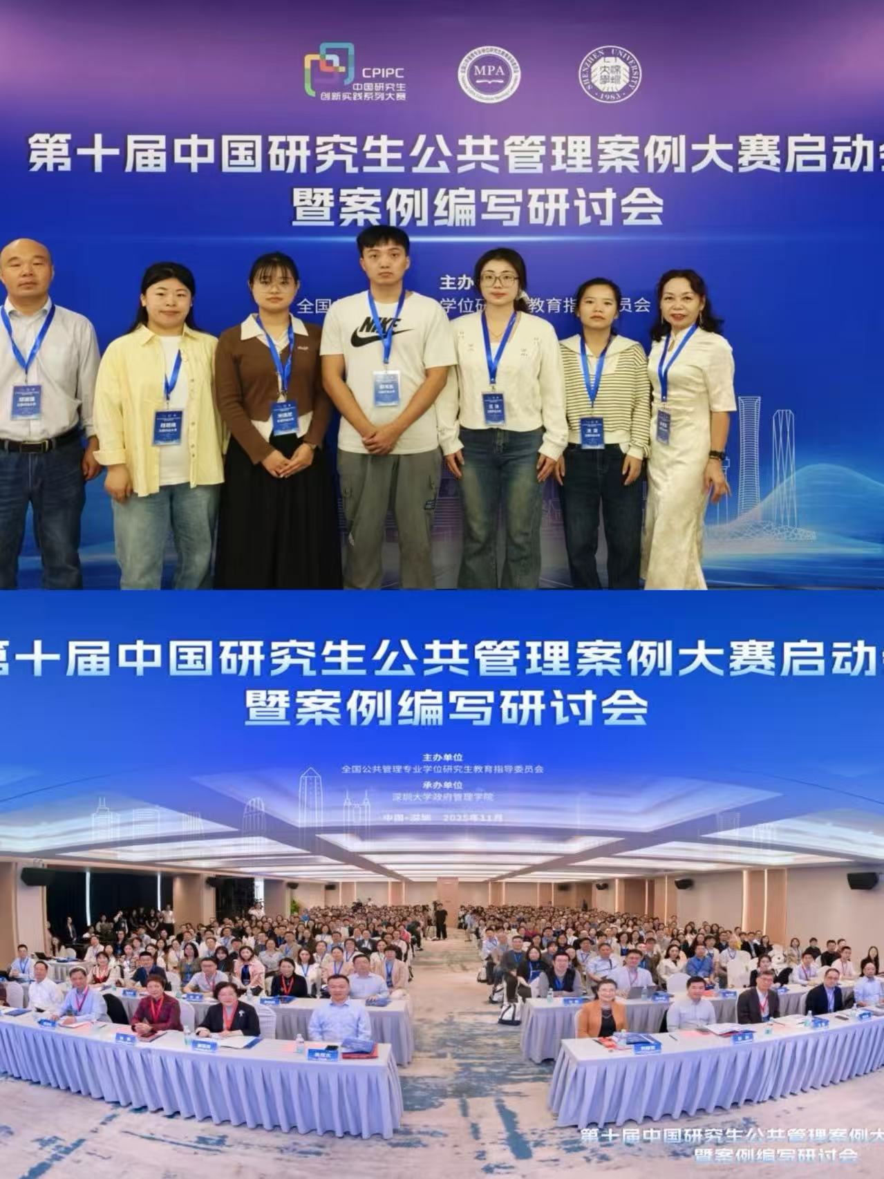 2025年11月15日至17日,由全国公共管理专业学位研究生教育指导委员会主办,深圳大学政府管理学院承办的“第十届中国研究生公共管理案例大赛启动会暨案例编写研讨会”在深圳顺利举办。为深化MPA案例教学与开发工作,MPA教育中心郑瑞强、朱美英老师携研究生赴会交流学习。